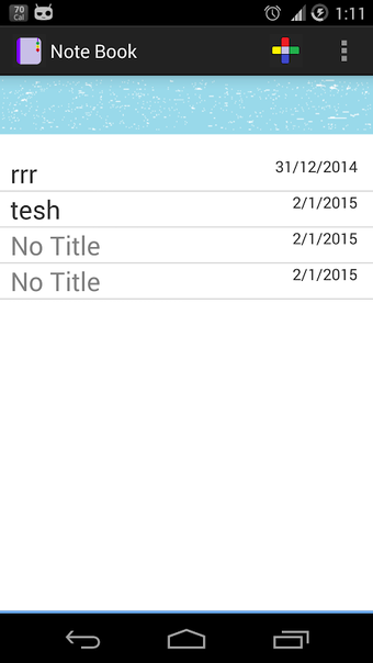 NoteBook est un éditeur de texte pratique conçu spécialement pour les utilisateurs d'Android. Il permet de créer un nombre illimité de notes et de les enregistrer pour une consultation ultérieure. Avec son interface intuitive, il facilite la prise de notes rapide et l'organisation des idées, ce qui en fait un outil idéal pour les étudiants, les professionnels et toute personne ayant besoin de garder une trace de ses pensées.